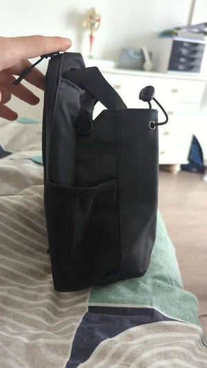 Designed for gym and everyday carry, the pouch sits comfortably as a crossbody. Magnetic mounting adds versatility for both hands-free training and errands.
