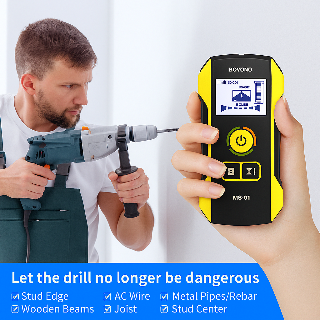 Take the guesswork out of drilling! The Precision Metal Detector Wall Scanner helps you easily locate metal pipes, live AC wires, studs, and rebar hidden behind walls β so every hole is safe, clean, and accurate.
