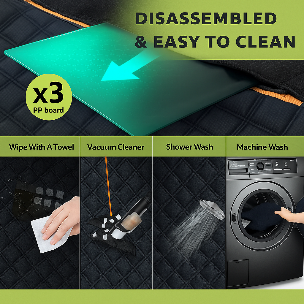 A heavy-duty dog car seat protector is a durable, waterproof barrier designed to keep your vehicle's seats clean and protected while travelling with your furry friend. Made from tough, high-quality materials, it prevents scratches, fur, dirt, mud, and accidents from damaging your car’s upholstery.