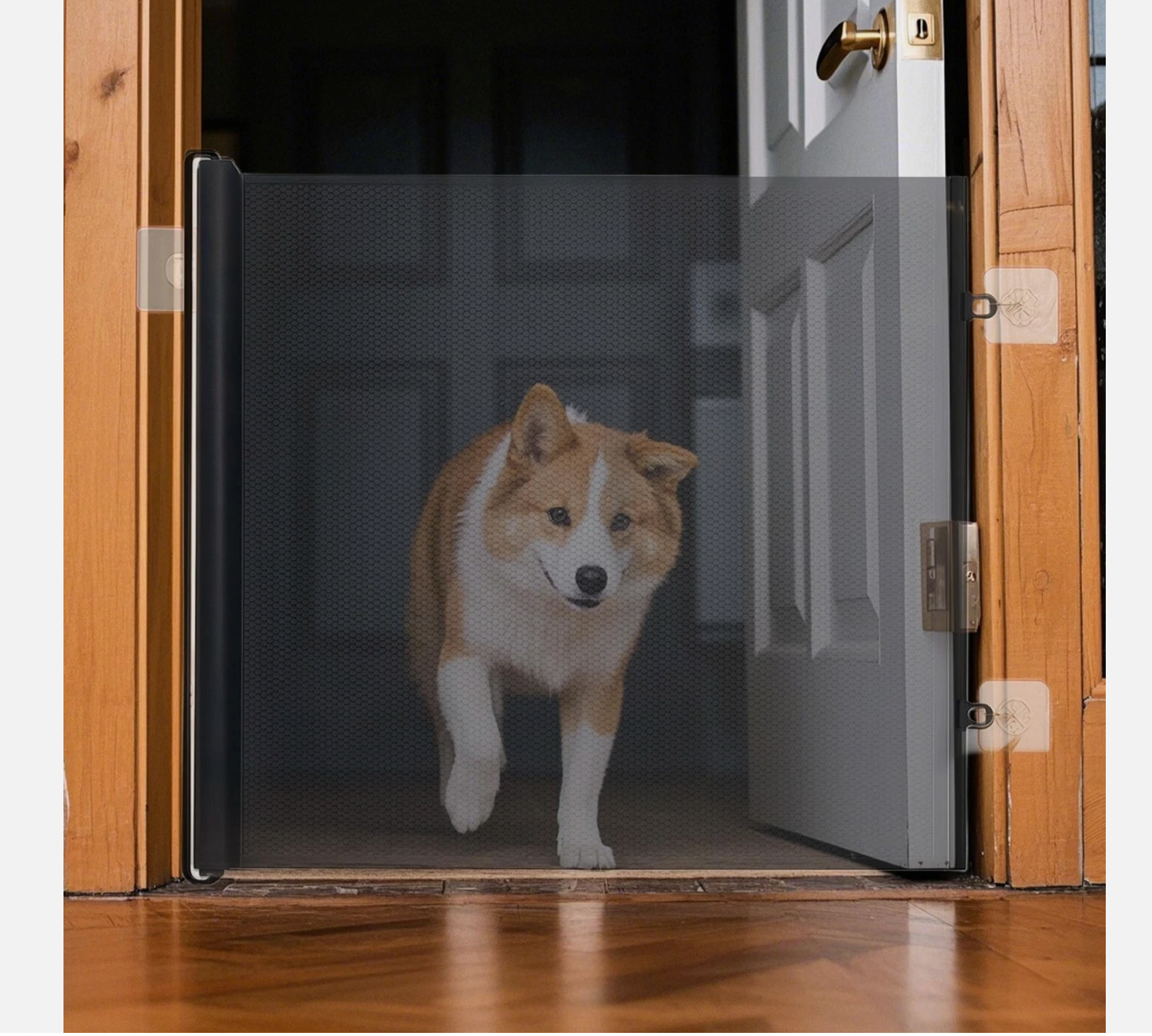 Introducing the Retractable Pet Safety Gate 🐾 — the elegant, space-saving barrier that keeps your pets safe without compromising style.