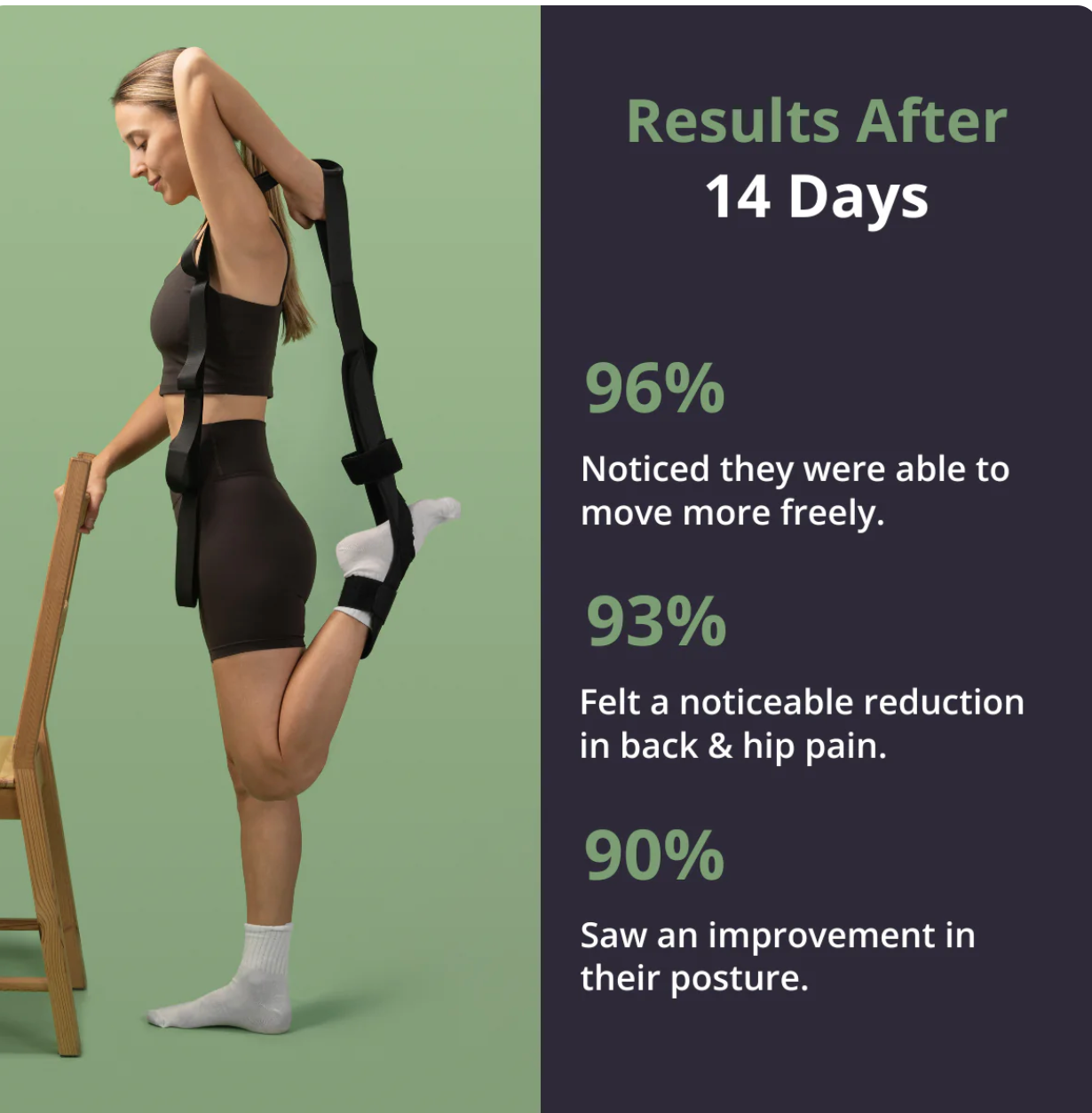 The Flex-Strap is engineered to stretch the hamstrings, glutes, hips, and lower back — the critical zones that affect sciatic nerve compression. Gentle, controlled stretching helps release tight muscles and reduces pressure on the nerve, providing real, lasting relief.